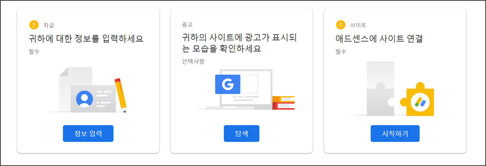 - 구글 애드센스 에서 정보 입력(필수)과 광고 설정(선택)을 완료합니다,