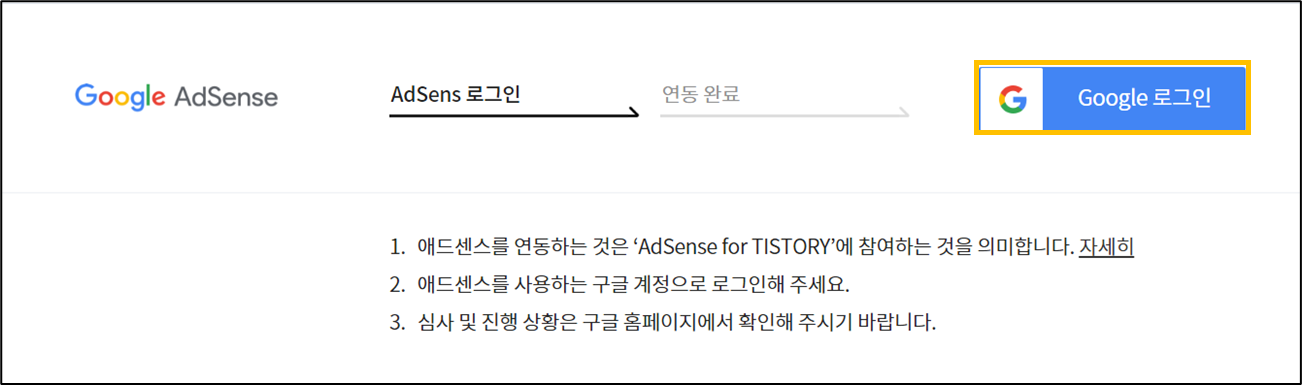 - 블로그관리 홈 > 수익 에서 애드센스에 등록할 구글계정으로 로그인을 합니다.