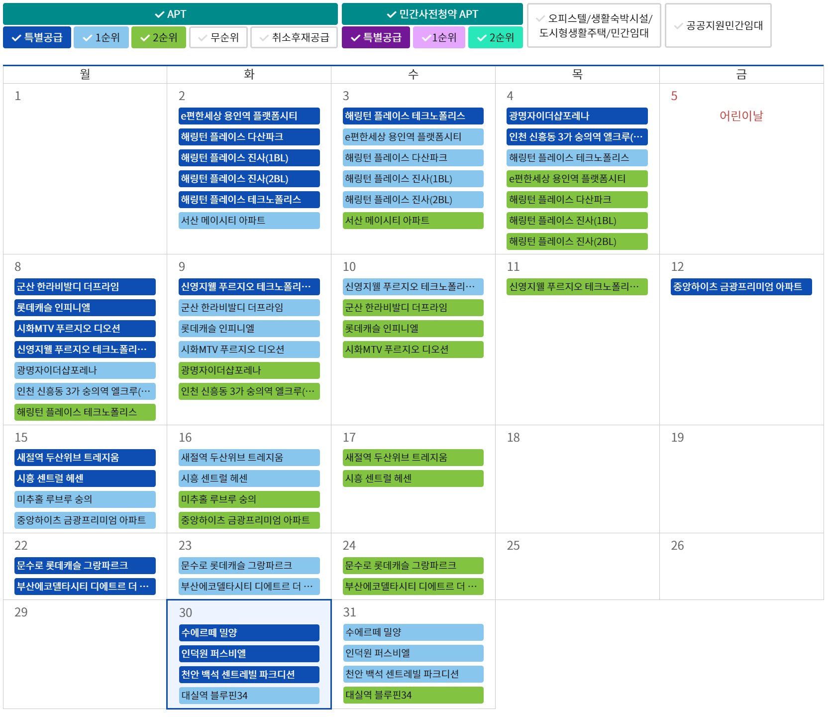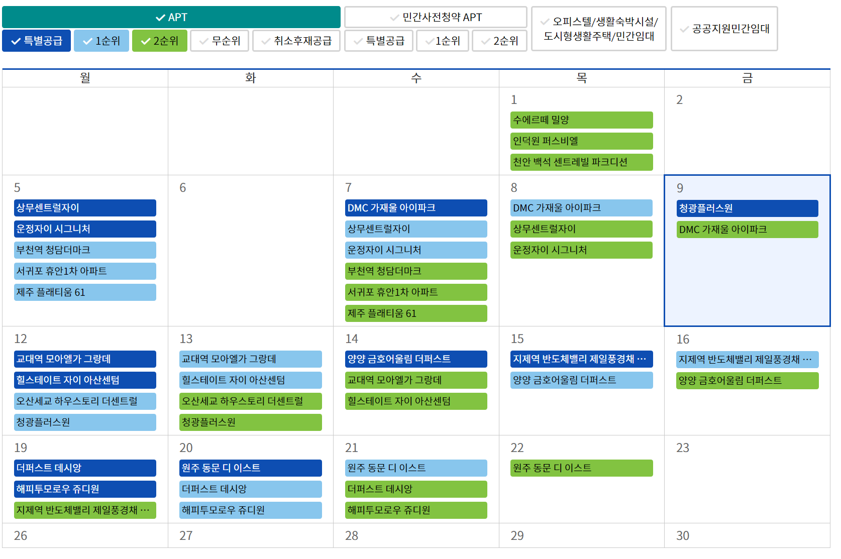 첫번째로 청약Home 에서 확인한 2023년 5월, 6월 청약 캘린더입니다.