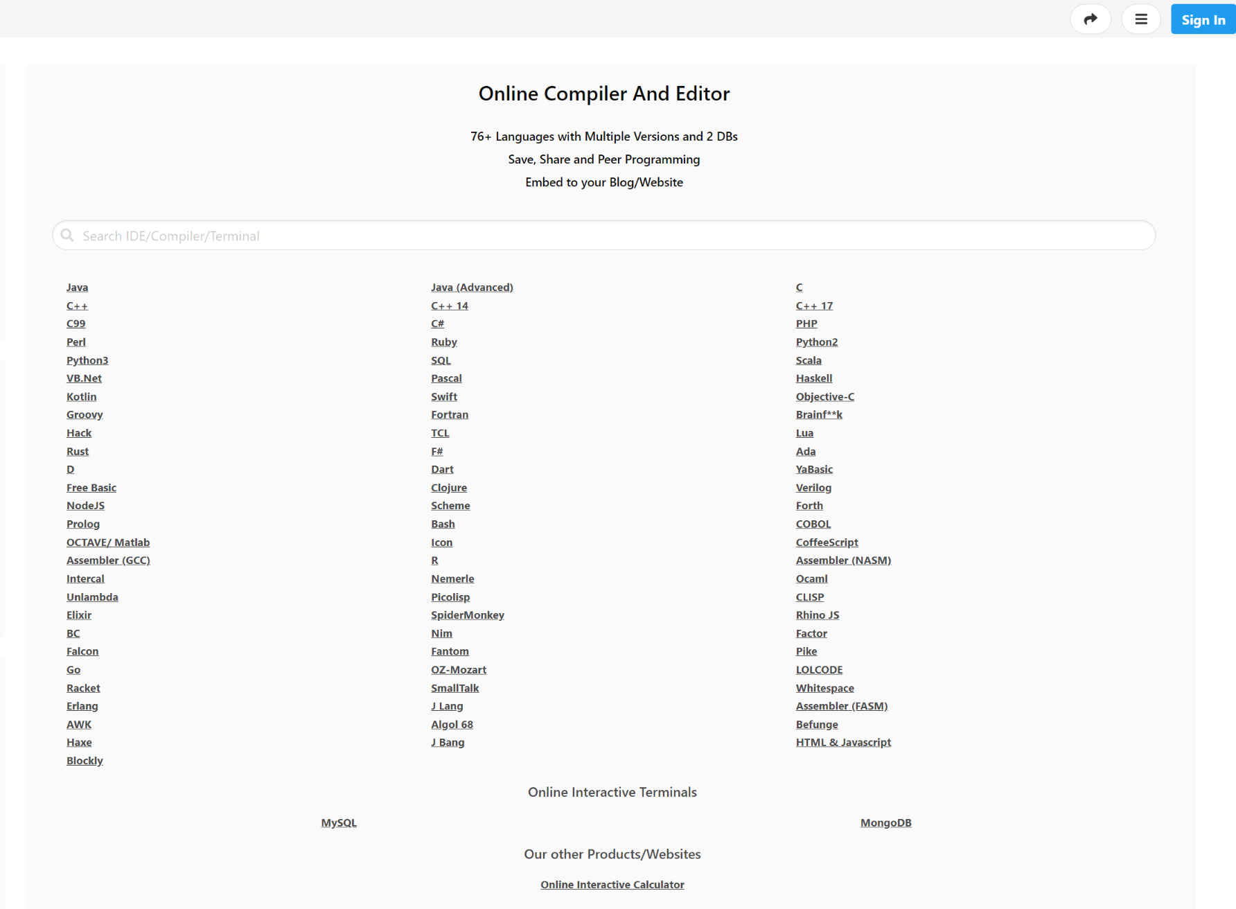 ※ 대부분의 웹 기반 컴파일러가 가지는 특징일 것 같습니다. 대규모 상용 프로그램을 개발한다면 상용 컴파일러를 사용하시는 게 좋겠습니다.